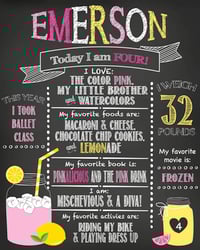 Lemonade Stand Birthday Chalkboard, pink, yellow, lemonade, lemons, mason jar, keepsake