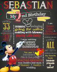 Mickey Mouse themed Birthday Chalkboard- mickey mouse clubhouse, red, yellow, keepsake